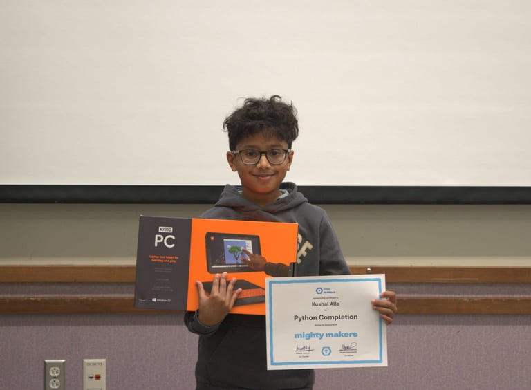 Kushal’s project stood out for its incredible polish, technical complexity, and creative vision. For his outstanding work, Kushal took home the grand prize: a complete build-your-own-computer kit! What a fantastic prize for a future tech leader!